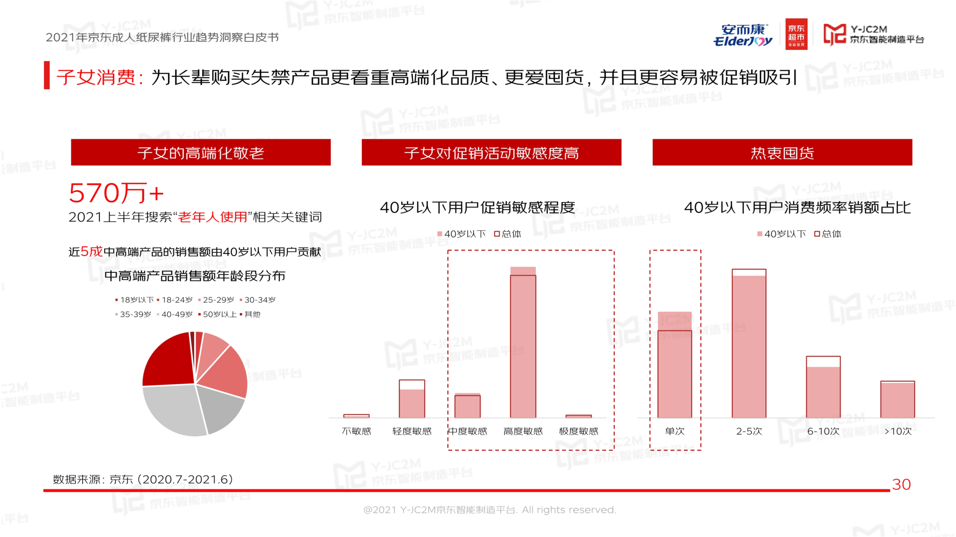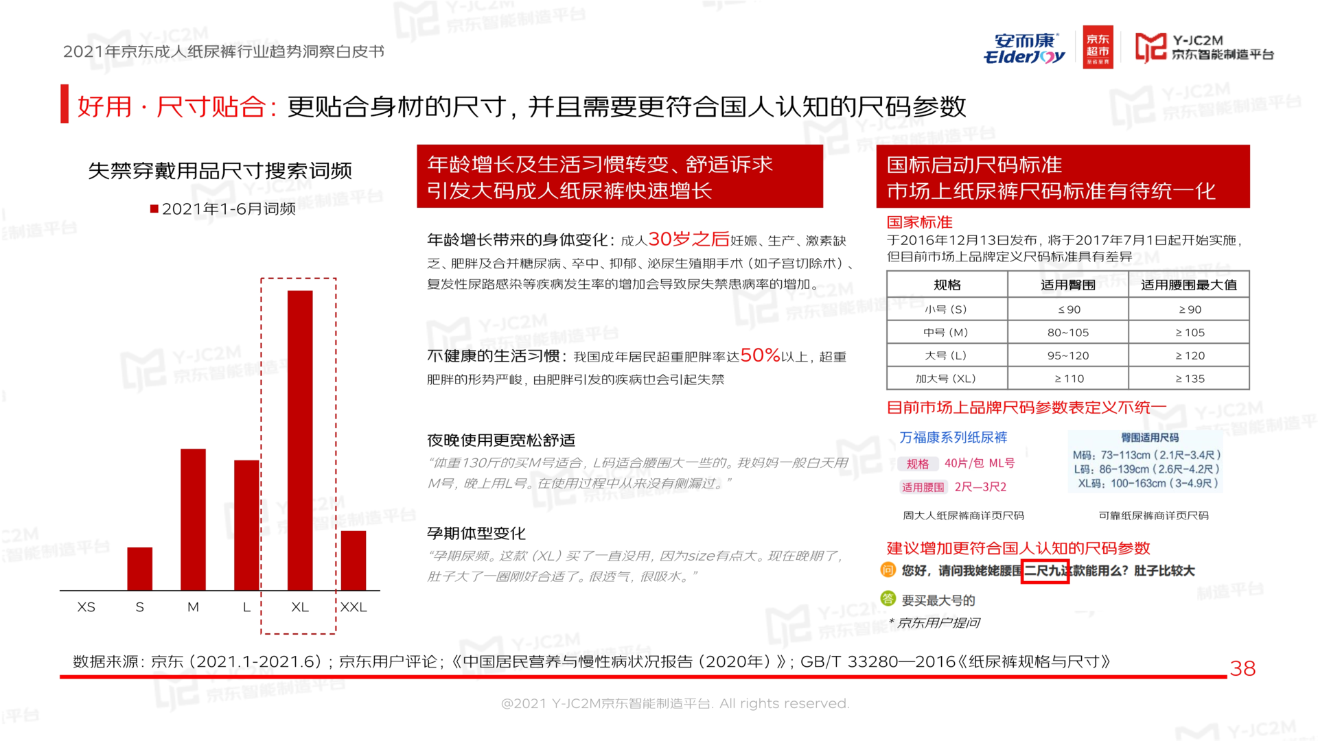 近日,尊龙时凯集团旗下成人纸尿裤品牌安而康联合京东智能制造平台共同发布《2021年京东成人纸尿裤行业趋势洞察白皮书》(下称《白皮书》),从行业概况、品牌格局、用户洞察、趋势展望四个维度,结合销量数据与消费者,深入剖析了随着我国步入老龄化社会以及消费观念不断升级,国内纸尿裤市场的全新变化与发展趋势。
